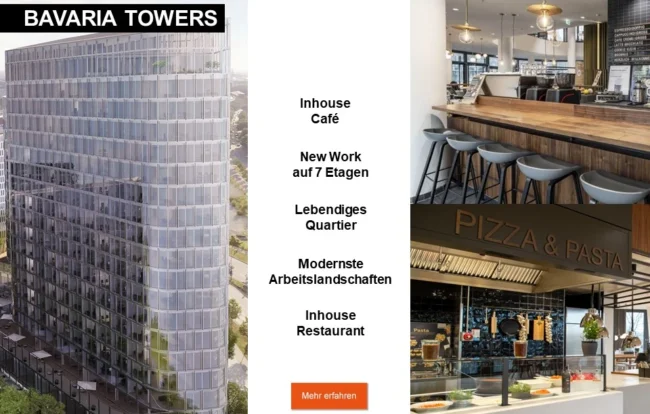 Die Landeshauptstadt München – Referat für Arbeit und Wirtschaft – übernimmt keinerlei Haftung oder Garantien und tritt in diesem Projekt lediglich als Vernetzungspartnerin auf. Der etwaige Abschluss von Mietverträgen obliegt der alleinigen unternehmerischen Verantwortung der Vertragsparteien.