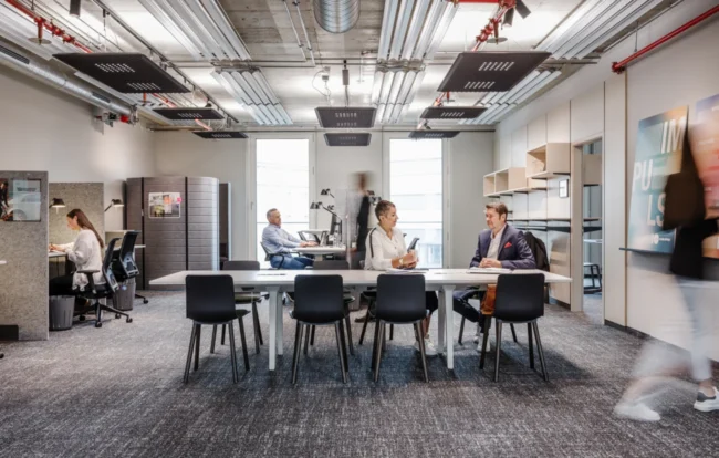 Eigenes Büro mit Rundum-Service↵↵Unsere Flexible Offices sind nicht nur funktional, sondern auch richtig stylisch. Hier gibt es mehr, als nur einen Arbeitsplatz. Die hochwertige Ausstattung und ein ausgefeiltes Licht- und Akustikkonzept sorgen für Wohlbefinden und damit für mehr Produktivität und Spaß bei der Arbeit.