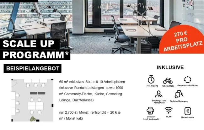 (*) Alle aufgeführten Angebote erfolgen freibleibend. Eine zwischenzeitliche Vermietung von Seiten der Anbieter bleibt vorbehalten, es erfolgt keine Reservierung von Mieteinheiten. Die angebotenen Konditionen bleiben Startups vorbehalten. Die Entscheidung zugunsten eines Mieters bzw. über den Abschluss eines Mietvertrags liegt ausschließlich bei den Anbietern der Flächen als Vermieter. Die aufgeführten Angebote und Konditionen sind nur für direkte Vertragsabschlüsse zwischen Startups und den Anbietern ohne Beteiligung/ Vermittlung Dritter gültig.